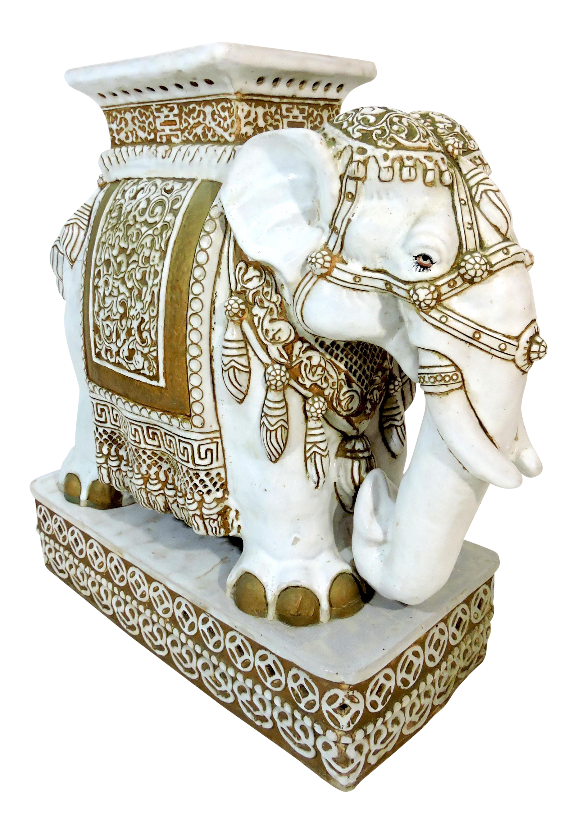 Vintage White And Gold Ceramic Elephant Garden Stool Plant Stand