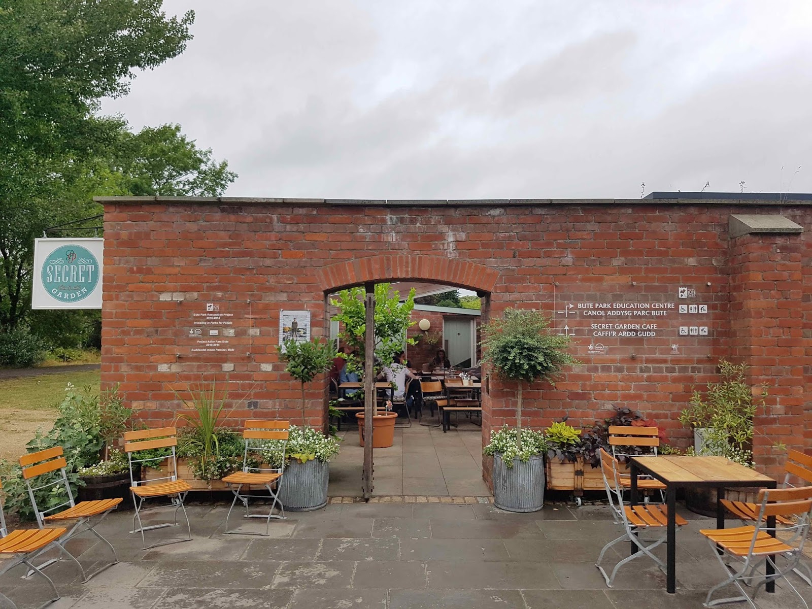 Secret Garden Cafe Entrance People Visitors In Walled Garden Area